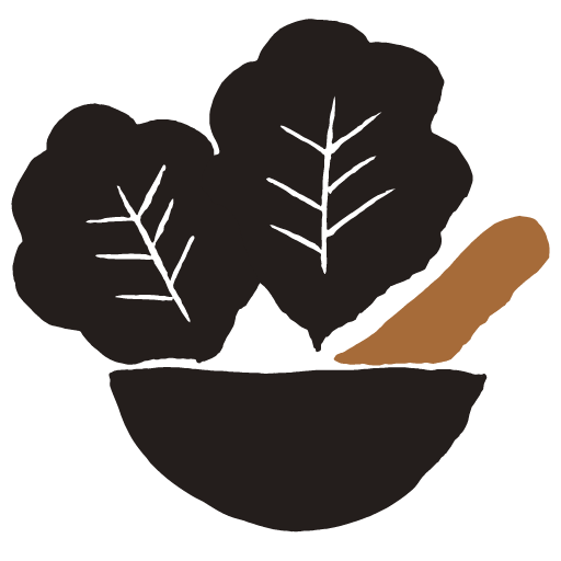 当店のロゴマークは、川崎市の伝統野菜でありその高い栄養価で江戸時代の大飢饉を救ったと伝わる「のらぼう菜」に、薬を調合させるための「乳鉢」と「乳棒」を組み合わせました。